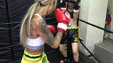 悶絶シリーズに、ついに鮫島るいが参戦。今度はキャットファイトで対決。柔道で鍛えた鮫島にキックボクサーとして活躍したことのある神崎が立ち向かう。ルールはいつも通り、失神決着のみ。相手があきらめるまで、何度でも倒す。互いのパンチが交錯し、ダウンの応酬。絞め技に涎を垂らしながら立ち上がり、相手に立ち向かっていく。最後は全裸キャットファイトで失神するまで責め立てていく。